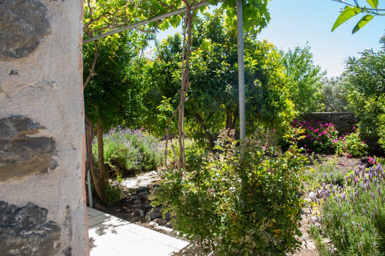 The house comprises a large open plan living-dining room with a beautiful original stone fireplace leading to an immaculately landscaped garden of flowers, herbs and mature and abundant fruit trees, affording both sunshine and shade and a private place in which to relax, eat or socialise. The fully-fitted kitchen leads to a small hallway, with ceiling-level storage, a bathroom, and one double bedroom.